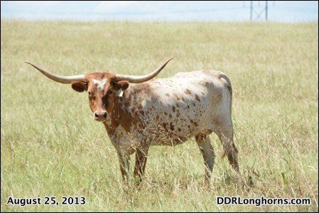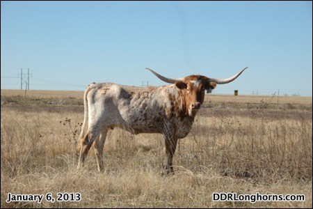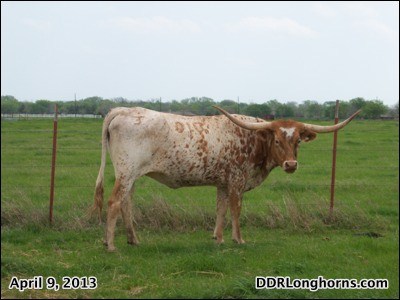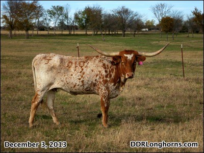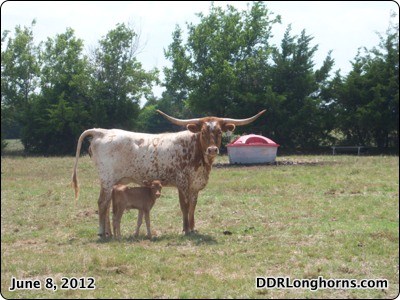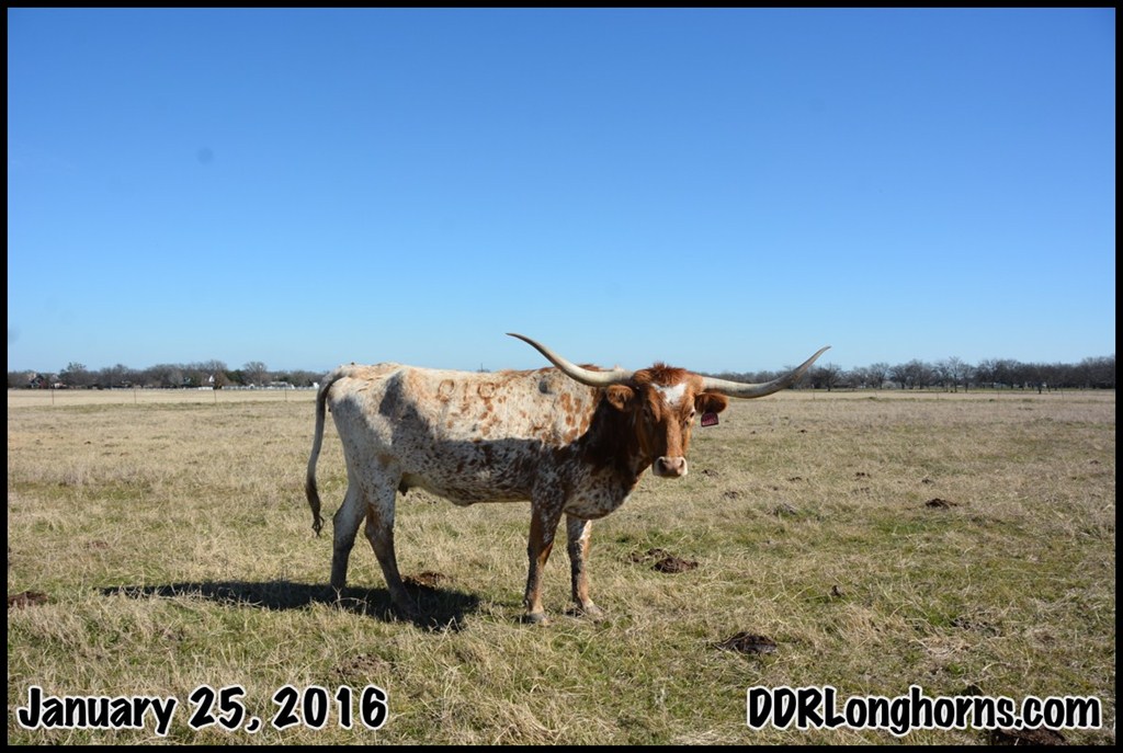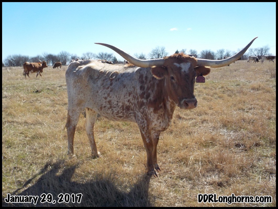 A beautiful colored up cow that has produced nicely for us. She is due soon with a calf by Tuff Thunderbolt SRC. She had a Zeus daughter that was 70" at 3. In May, Easter measured 63.5".